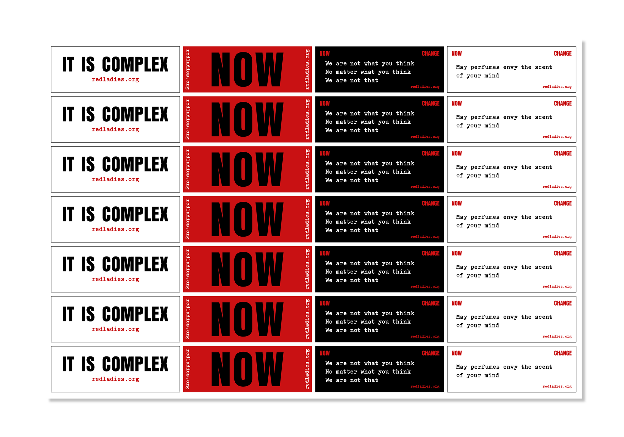 – 1 x A4 page (28 pack)– A mix of four Red Ladies statement stickers– Shiny finish– Design by Atelier Waldbillig